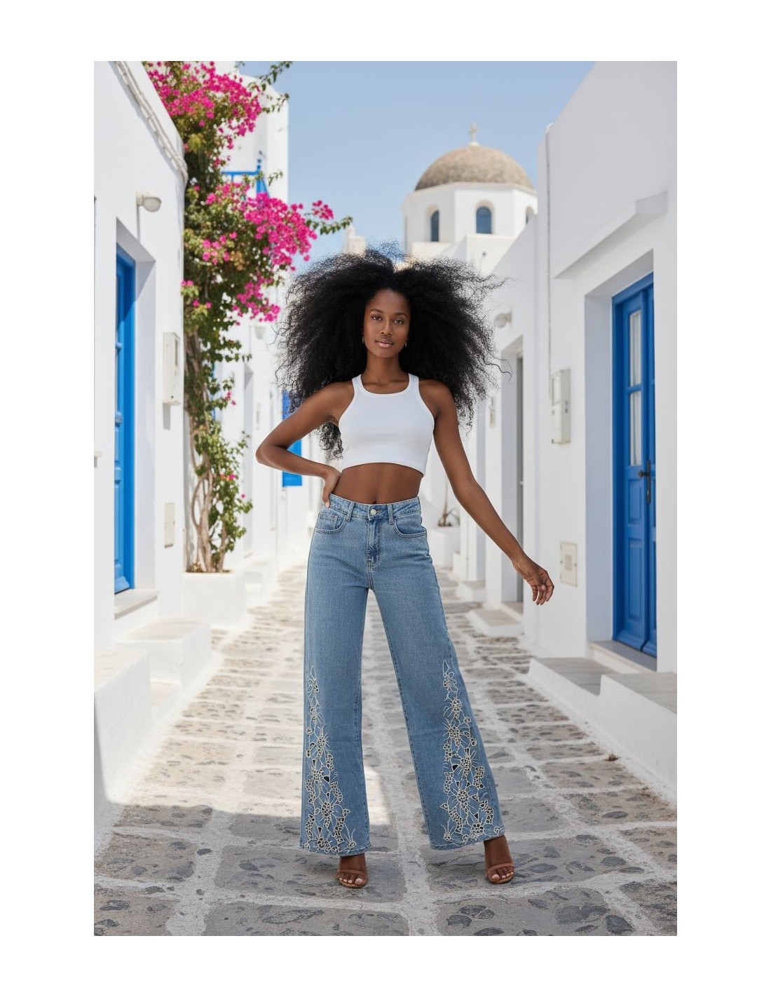 vaquero bordado calado