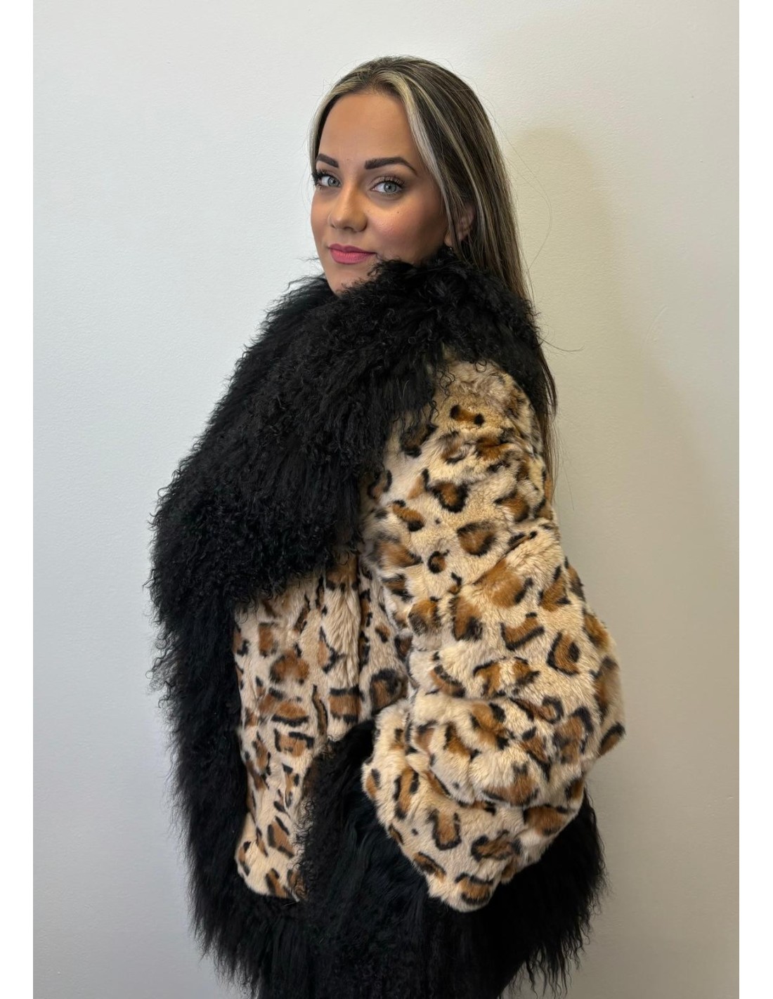 CHAQUETA DE PELO NATURAL EN CONEJO REX Y OVEJA TIBETANA